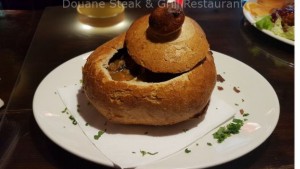 (zupa gulaszowa z mięsem wołowym podawana w chlebie.)